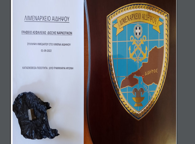Το πρωί της Πέμπτης 1 Σεπτεμβρίου συνελήφθη στο λιμάνι των Λουτρών Αιδηψού, από στελέχη του Λιμεναρχείου Αιδηψού, ένας 44χρονος Έλληνας, για παράβαση της νομοθεσίας περί ναρκωτικών.