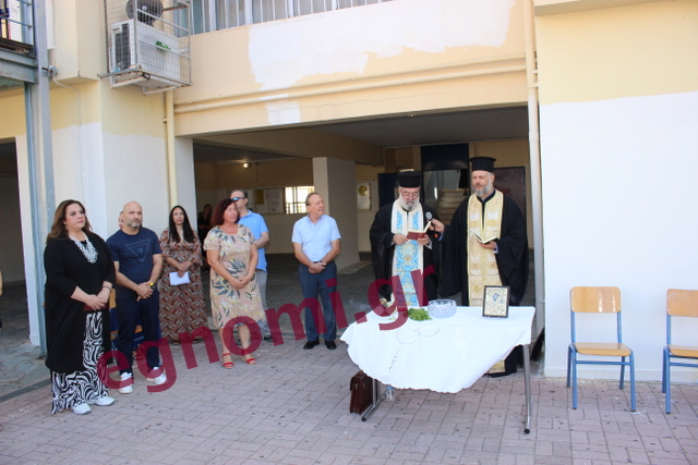 Την τελετή έκαναν οι ιερείς π. Χαράλαμπος Ταραμίγκος και π. Χρυσόστομος Καλύβας, παρουσία της διευθύντριας του σχολείου Μαρίας Ματθαίου, των εκπαιδευτικών, του Διευθυντή Πρωτοβάθμιας Εκπαίδευσης Εύβοιας Κώστα Φράγκου, της Προέδρου Δημοτικού Συμβουλίου Χαλκίδας Δήμητρας Σακελλαράκη, του δημοτικού συμβούλου Πάνου Καραμούζη κ.α (φωτό κάτω).