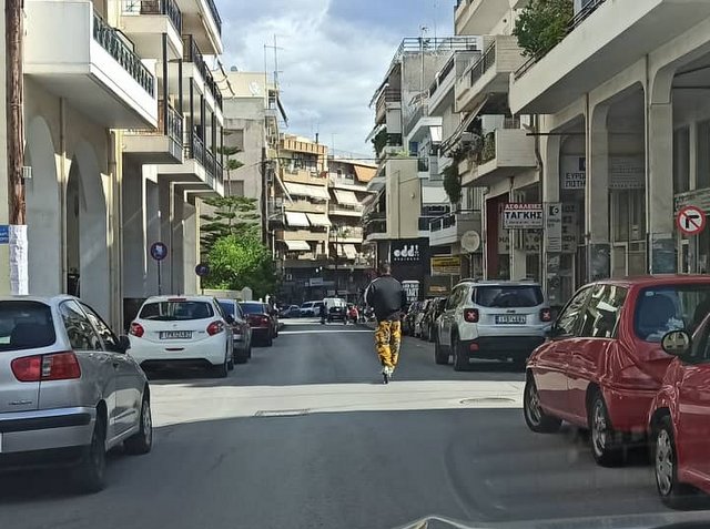 Όπως μπορείτε να δείτε στις 4 φωτογραφίες της ανάρτησης, ο νεαρός σε αρκετά μεγάλη απόσταση κινείται στο κέντρο του οδοστρώματος, πότε λίγο δεξιά και πότε λίγο αριστερά από τη νοητή γραμμή του κέντρου της οδού.
