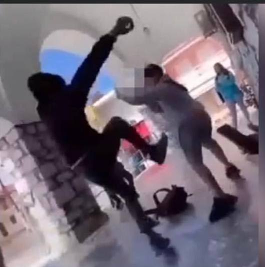 Επιδόθηκαν σε κλωτσιές και μπουνιές μπροστά στα μάτια των συμμαθητών τους, οι οποίοι έδειχναν να απολαμβάνουν το θέαμα και μαγνητοσκοπούσαν τον καβγά με τα κινητά τους τηλέφωνα.