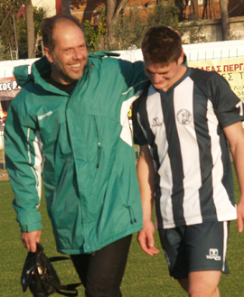 Στο τέλος του αγώνα την "τιμητική" του είχε και ο Ηρακλής Ψαχνών, με τον σπίκερ του συνδρομητικού καναλιού να αναφέρει την ομάδα από την οποία άρχισε να ξεδιπλώνει την καριέρα του ο Τσοκάνης (στη φωτό πάνω με τον Αντώνη Πριόνα), ο οποίος έχει εξελιχθεί σε έναν σύγχρονο "box to box" χαφ και έχει οδηγήσει το Βόλο στη 2η θέση του πρωταθλήματος!