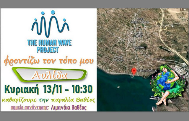 Την Κυριακή 13 Ιουλίου θα πραγματοποιηθεί από την ομάδα The Human Wave Project δράση καθαρισμού στην παραλία στο Βαθύ Αυλίδας. Στην πρόσκλησή τους οι διοργανωτές της δράσης αναφέρουν: