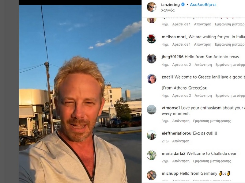 Τη Χαλκίδα επισκέφθηκε πριν λίγες μέρες ο Ίαν Ζίρινγκ, που έγινε γνωστός ως Στιβ μέσα από τη διάσημη σειρά «Χτυποκάρδια στο Μπέβερλι Χιλς».