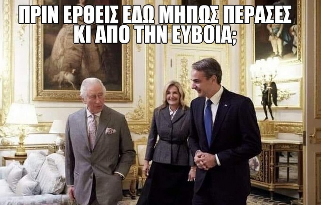 Οι συνεχείς σεισμικές δονήσεις στην Εύβοια τις τελευταίες μέρες και οι φήμες περί ...γκαντεμιάς του Κυριάκου Μητσοτάκη, συνδυάστηκαν με την επίσκεψη του πρωθυπουργού στην Βρετανία και την συνάντηση με το βασιλιά Κάρολο.