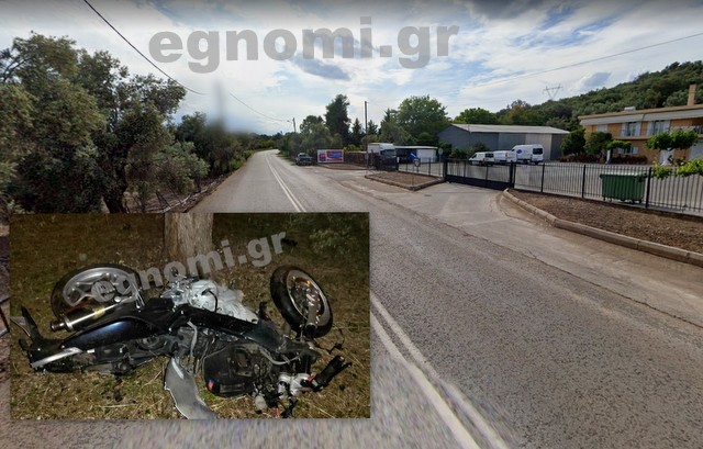 Ο δικυκλιστής χτύπησε πάνω σε σκύλο επί του δρόμου, ξέφυγε από την πορεία του και η μοτοσικλέτα (φωτό κάτω) ανατράπηκε, με αποτέλεσμα τον θάνατο του αναβάτη.