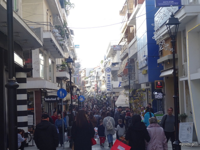 Εορταστικό ήταν το σκηνικό στον εμπορικότερο δρόμο της Χαλκίδας το μεσημέρι της Κυριακής (18/12).