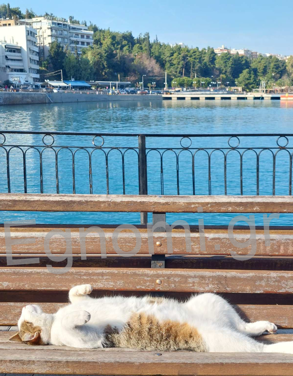 Το χαριτωμένο τετράποδο την είχε ...αράξει σε ένα παγκάκι και απολάμβανε για ώρες τον ύπνο του κάτω από τον ήλιο, χωρίς να επηρεαστεί από τα βλέμματα και τις φωνές των περαστικών. Ολοι σταματούσαν στο σημείο και έβγαζαν φωτογραφία με τη χαλαρή γατούλα, η οποία ξύπνησε μόνο όταν ήθελε η ίδια (αφού είχε χορτάσει τον ύπνο της...).