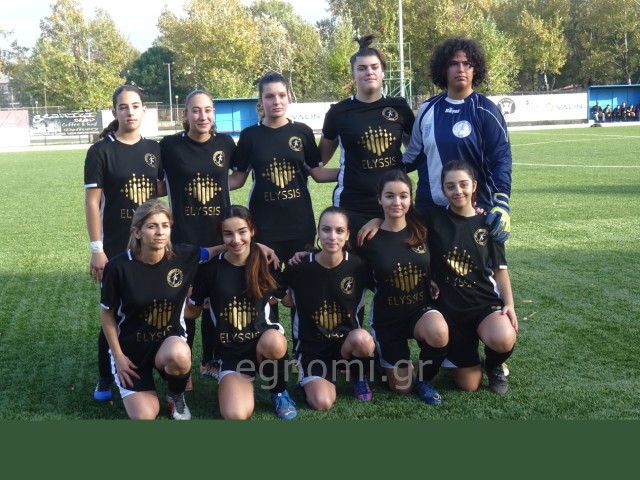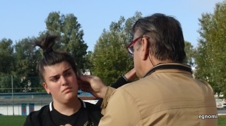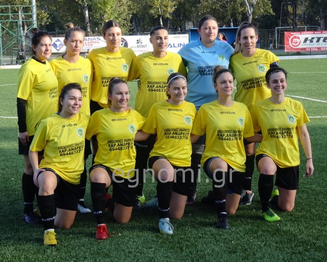 Με δέκα παίκτριες παρουσιάστηκαν στο γήπεδο οι Απολλωνίδες (φωτό κάτω - η γκολκίπερ έχει μαλλί Μπίσεσβαρ) κι έμειναν με 9, γιατί μια κοπελίτσα φόραγε σκουλαρίκι που δεν γινόταν για πρακτικούς λόγους να το βγάλει και με απόφαση της διαιτητή Ελένης Κοτταρά, η οποία είναι αρκετά αυστηρή, πέρασε εκτός αγωνιστικού χώρου και την έπιασε το παράπονο.