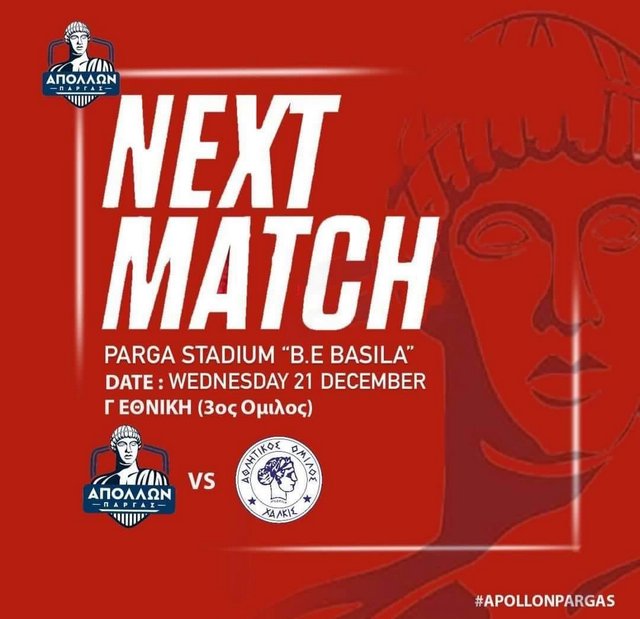 Στην Πάργα με τον Απόλλωνα δοκιμάζεται στις 3 το μεσημέρι ο ΑΟ Χαλκίς για την εμβόλιμη 7η αγωνιστική του 3ου ομίλου της Γ' Εθνικής.