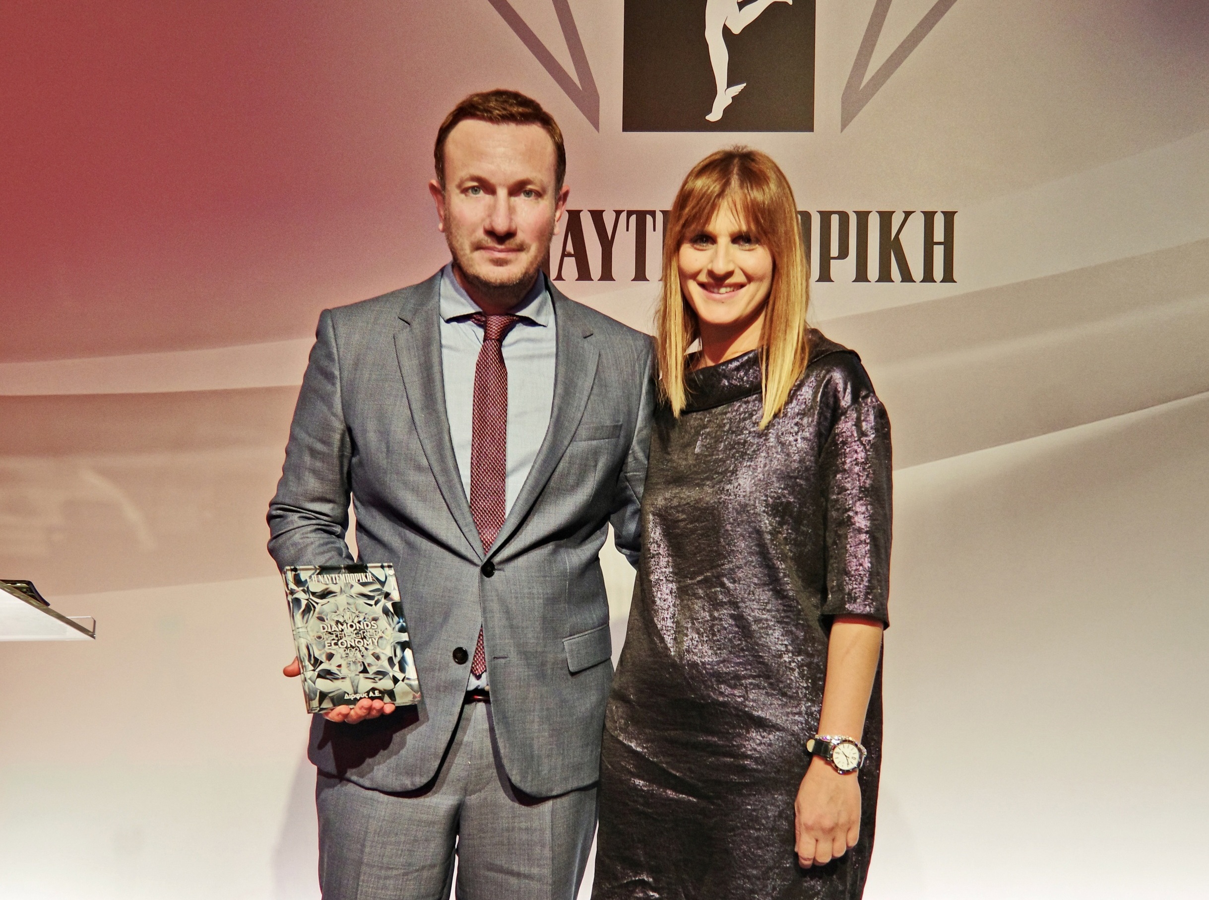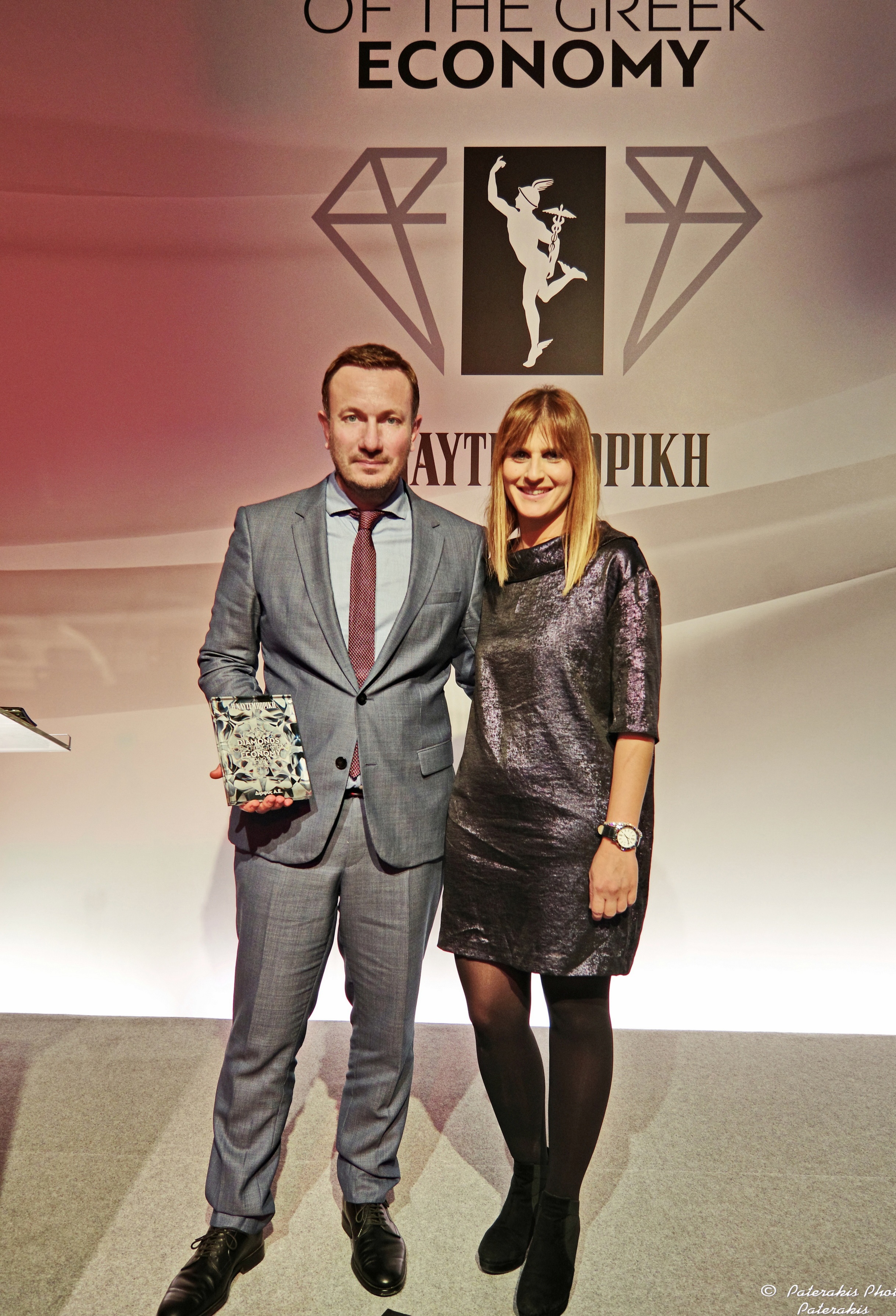Ο Νίκος Σέρρας με τη σύζυγό του Μαρία κρατά το βραβείο της εταιρείας στο θεσμό "Diamonds of the Greek economy"