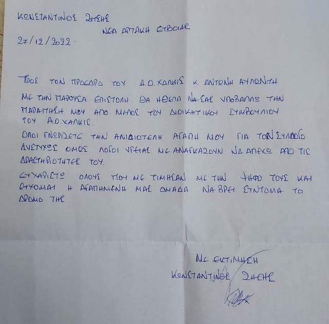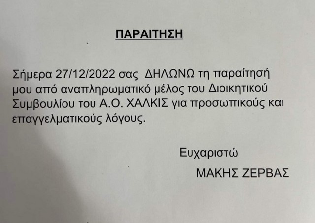 ΑΟ ΧΑΛΚΙΣ: Ανακοίνωση συσπείρωσης, συνέλευση, νέες παραιτήσεις και Κολιτσιδάκης
