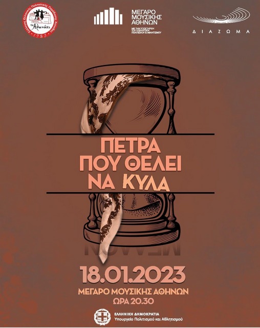 Το Μέγαρο Μουσικής Αθηνών φιλοξενεί την Τετάρτη 18 Ιανουαρίου, στις 8:30 το βράδυ, στην Αίθουσα Δημήτρης Μητρόπουλος τη μουσικοχορευτική παράσταση «Πέτρα που θέλει να κυλά».