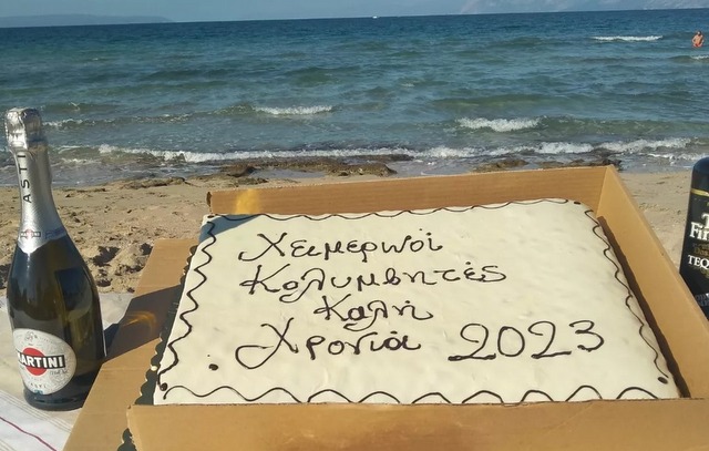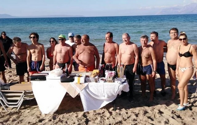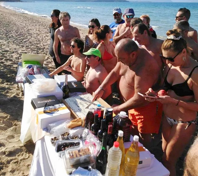 Κατά τα άλλα, άνοιξαν σαμπάνιες, υπήρχε πλούσιος μπουφές, με σπιτικά εδέσματα και κυριάρχησαν οι ευχές, τα αστεία και τα πειράγματα, εντός και εκτός θάλασσας.
