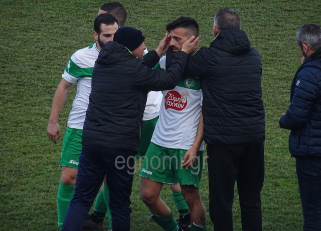 Στην κεντρική φωτογραφία απεικονίζονται ο σκόρερ του δεύτερου γκολ Πέτρος Στρατής, πίσω ο σκόρερ του πρώτου γκολ Γιώργος Μακρής και στη μέση οι νεοαποκτηθέντες Μάριος Καραχάλιος και Δημήτρης Τσούτσης που πρόσθεσαν στην ομάδα ποιότητα και εμπειρία.