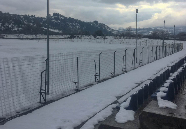 Στη φωτό βλέπετε το γήπεδο της Ιστιαίας αυτή τη βδομάδα μετά τη χιονοκαταιγίδα που έπληξε ιδιαίτερα την Εύβοια.