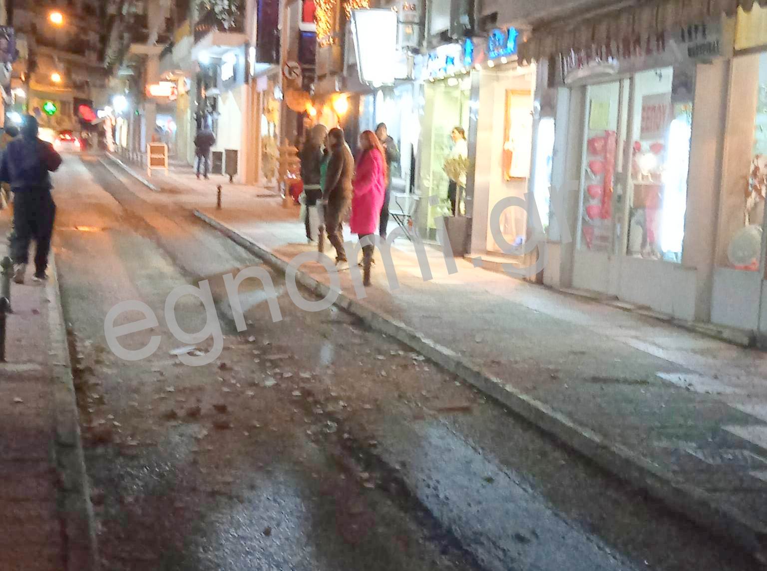 Σοβάδες έπεσαν στη μέση του δρόμου από την πολυκατοικία, όπου βρίσκεται το κατάστημα οπτικών της αείμνηστης Λέττας Αλμπάνη, και θα μπορούσαν να προξενήσουν σοβαρό τραυματισμό στους πεζούς, που εκείνη την ώρα περνούσαν από το σημείο.
