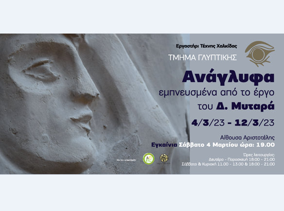 Έκθεση του τμήματος Γλυπτικής του Εργαστηρίου Τέχνης Χαλκίδας με έργα εμπνευσμένα από το έργο του Δημήτρη Μυταρά θα πραγματοποιηθεί στην Αίθουσα Αριστοτέλης, στην παραλία Χαλκίδας, από 4 μέχρι 12 Μαρτίου.