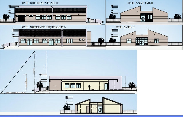 Προβλέπεται να κατασκευαστεί ισόγειο κτίριο επιφάνειας 351,31 τμ. και να διαμορφωθούν ημιυπαίθριοι χώροι επιφάνειας 32,47 τμ. Το ισόγειο θα αποτελείται από:
