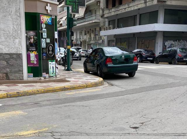 Μιλάμε για ένα από τα πιο κεντρικά σημεία της πόλης, την συμβολή των οδών Χαϊνά και Κατσικογιάννη, όπου ο οδηγός του συγκεκριμένου αυτοκινήτου έχει παρκάρει παράνομα και το έχει τερματίσει...