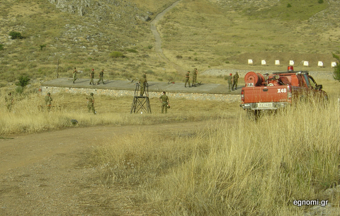 Στη φωτογραφία στιγμιότυπο από την εκτέλεση βολής, στο Πεδίο βολής της Σχολής Πεζικού.