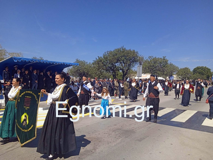 Δυναμική παρουσία είχαν στην παρέλαση της 25ης Μαρτίου οι σύλλογοι και οι φορείς της Χαλκίδας. Ξεχώρισαν οι σύλλογοι Αλωνακίου (φωτό πάνω) και Κρητών, οι οποίοι παρελάζουν επί σειρά ετών.