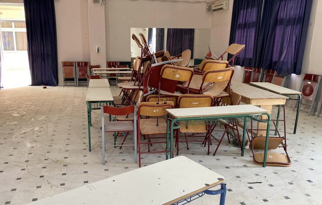 Τις μεγαλύτερες ζημιές υπέστη η αίθουσα εκδηλώσεων του Γυμνασίου, όπου καταστράφηκαν όργανα μουσικής και άλλα αντικείμενα, ενώ έγινε διάρρηξη και στο κυλικείο του σχολείου.