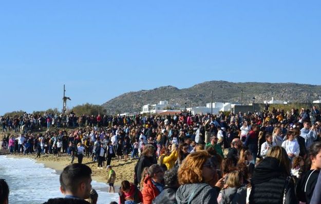 Εκατοντάδες πιστοί παρακολούθησαν και φέτος την Ακολουθία της Μεγάλης Παρασκευής και την περιφορά του Επιταφίου μέσα στη θάλασσα, στην Αγία Γρηγορούσα, στο Καστράκι της Νάξου.