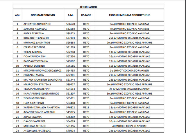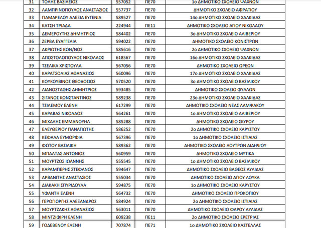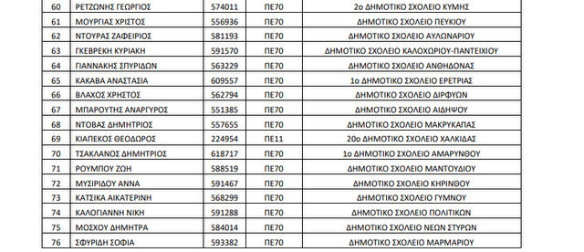 Με απόφαση του Διευθυντή της Διεύθυνσης Πρωτοβάθμιας Εκπαίδευσης Εύβοιας, Κωνσταντίνου Ζημιανίτη, τοποθετήθηκαν με βάση τη σειρά κατάταξης στον κυρωμένο πίνακα επιλογής και τις δηλωθείσες προτιμήσεις τους, οι Διευθυντές/τριες των Σχολικών Μονάδων αρμοδιότητάς του.