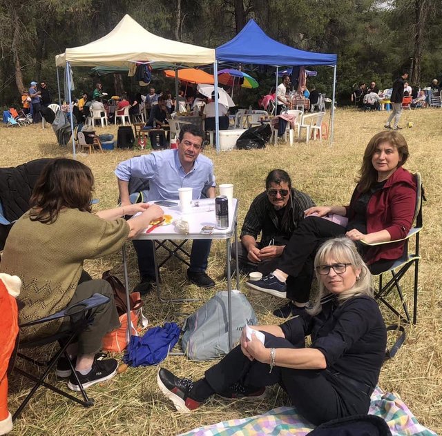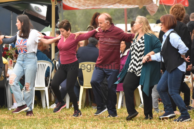 Οι καλεσμένοι έψησαν κοψίδια και γευμάτισαν στην πευκόφυτη έκταση στρώνοντας τραπέζια ή τραπεζομάντιλα στη γη, όπως έκανε η γνωστή Χαλκιδέα Μαίρη Χουλιέρη και η διευθύντρια του Επιμελητηρίου Εύβοιας Άρτεμις Χαρίτου με την παρέα τους (φωτό κάτω).