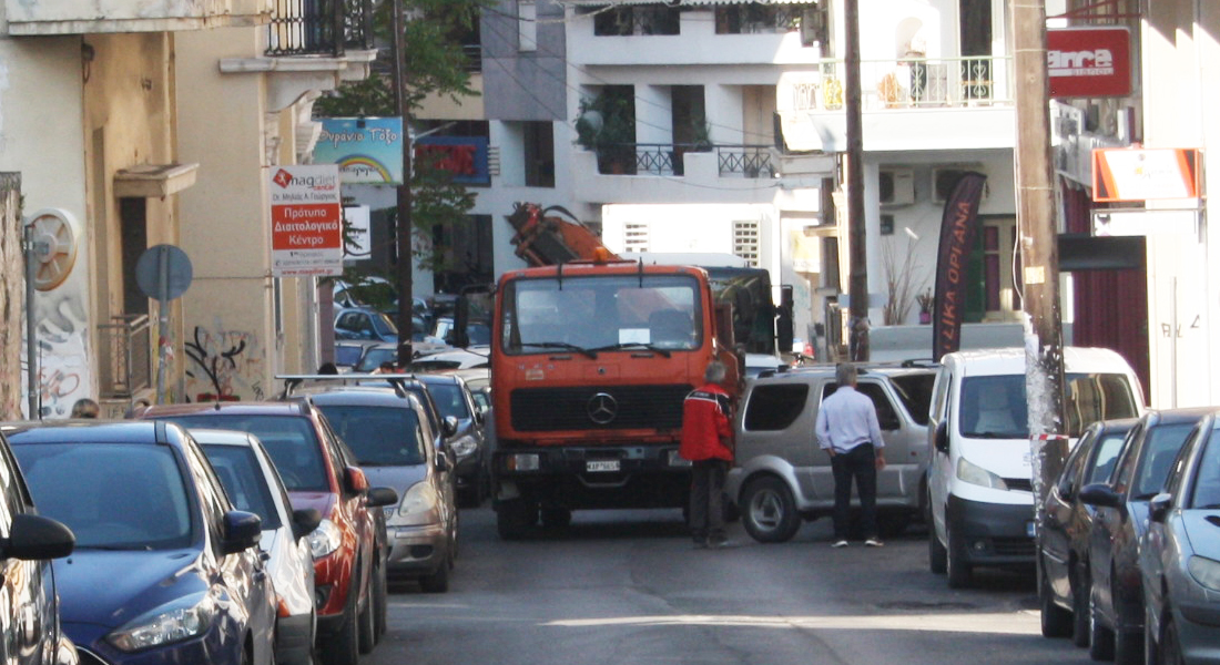 Κυκλοφοριακό έμφραγμα στη Χαλκίδα το πρωί της Δευτέρας 8 Μαΐου, όταν ένα φορτηγό φράκαρε στην οδό Νεοφύτου, αφού δεν χωρούσε να περάσει λόγω ενός παρκαρισμένου τζιπ.