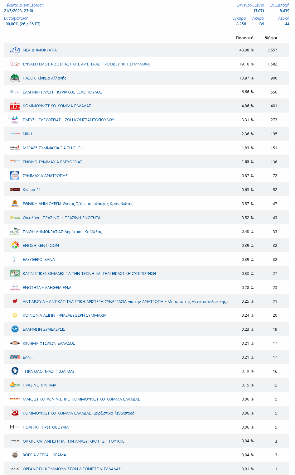 ΤΕΛΙΚΑ ΑΠΟΤΕΛΕΣΜΑΤΑ ΕΘΝΙΚΕΣ ΕΚΛΟΓΕΣ 2023 ΔΗΜΟΣ ΕΡΕΤΡΙΑΣ
