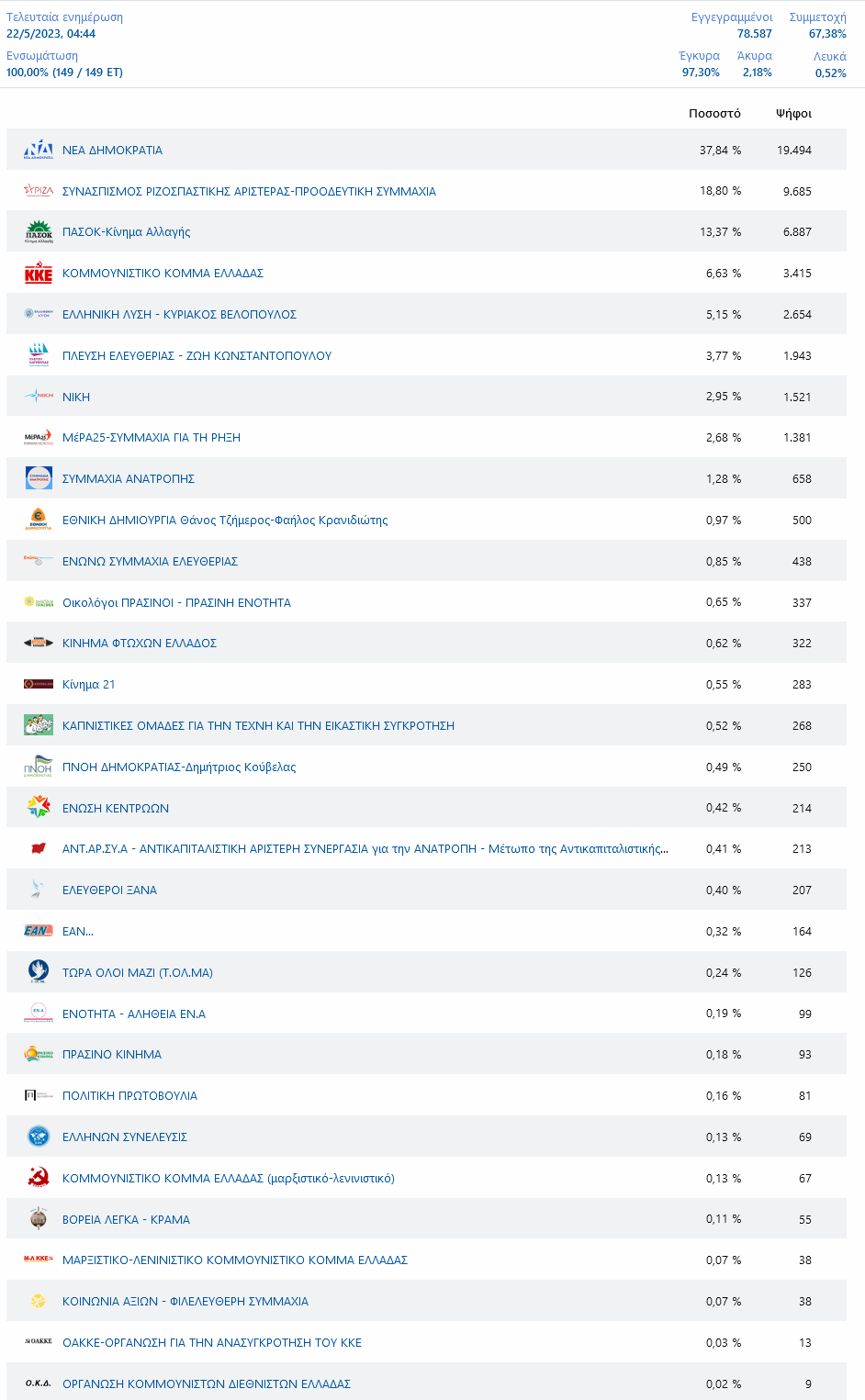 Σε 149 από 149 εκλογικά τμήματα.