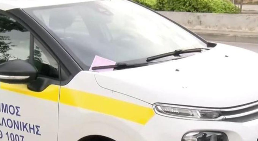 Το ότι ήταν όχημα του Δήμου Θεσσαλονίκης δεν απέτρεψε τους δημοτικούς αστυνομικούς να κόψουν κανονικά την κλήση και να την τοποθετήσουν… κάτω από τον υαλοκαθαριστήρα.