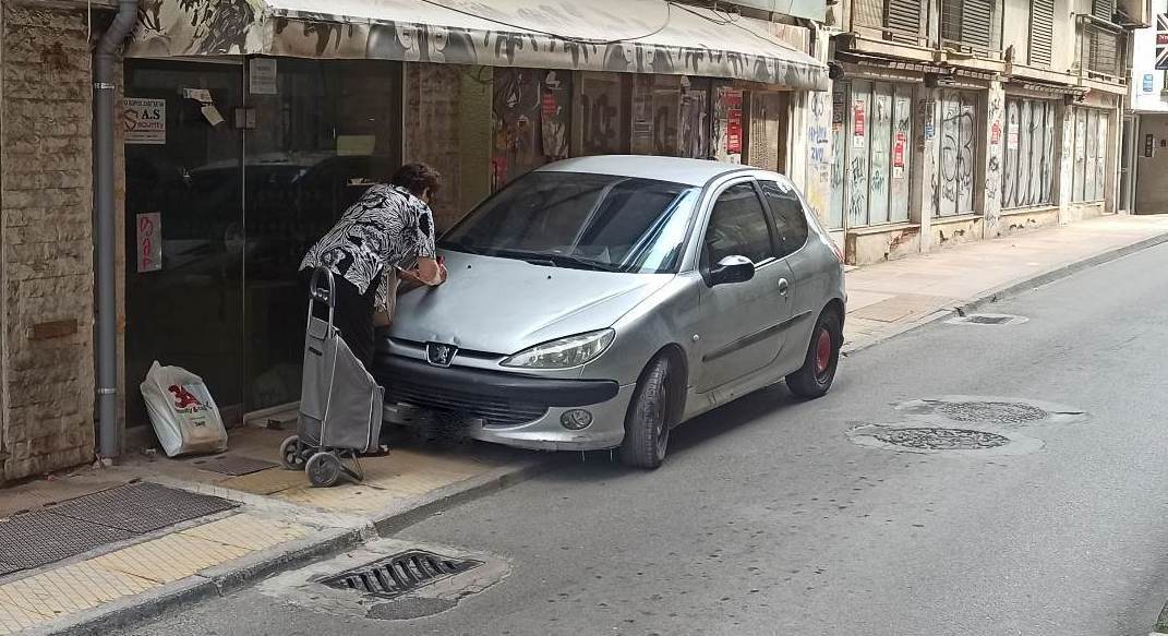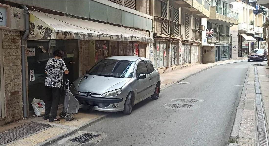 Πρωί του Σαββάτου 17 Ιουνίου και ένας οδηγός πάρκαρε το αυτοκίνητό του πάνω στο πεζοδρόμιο, στην οδό Κακαρά, λίγο πριν την συμβολή με την οδό Τσιριγώτη, χωρίς να αφήσει ούτε χιλιοστό χώρο για τους πεζούς και πετάχτηκε να κάνει την δουλειά του.