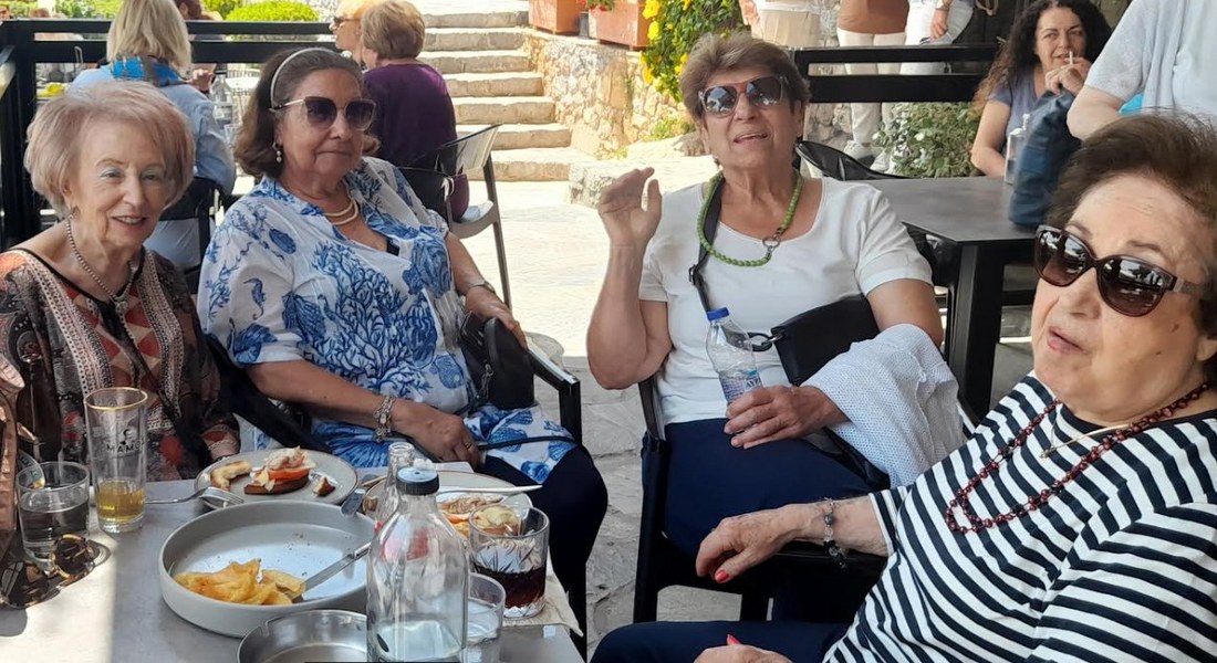 Ακολούθως, η έφορος, οι κυρίες μέλη και οι φίλες του Τμήματος αντάλλαξαν ευχές για το καλοκαίρι στο καφέ κάτω από το Κάστρο του Καράμπαμπα. Στην επίσκεψη συμμετείχε και η πρόεδρος του Λυκείου Ελληνίδων Χαλκίδας Μαρία Κωτσή.
