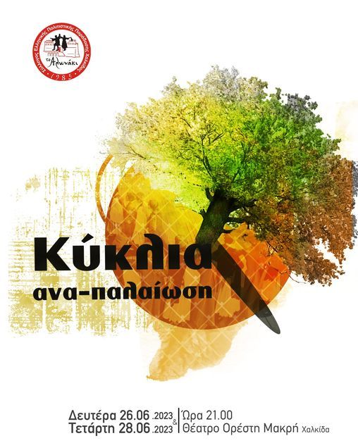 Ο Σύλλογος «Αλωνάκι» διοργανώνει εκδήλωση με τίτλο «κύκλια ανα - παλαίωση» τη Δευτέρα 26 και Τετάρτη 28 Ιουνίου, στις 9 το βράδυ, στο Θέατρο “Ορέστης Μακρής” στη Χαλκίδα.