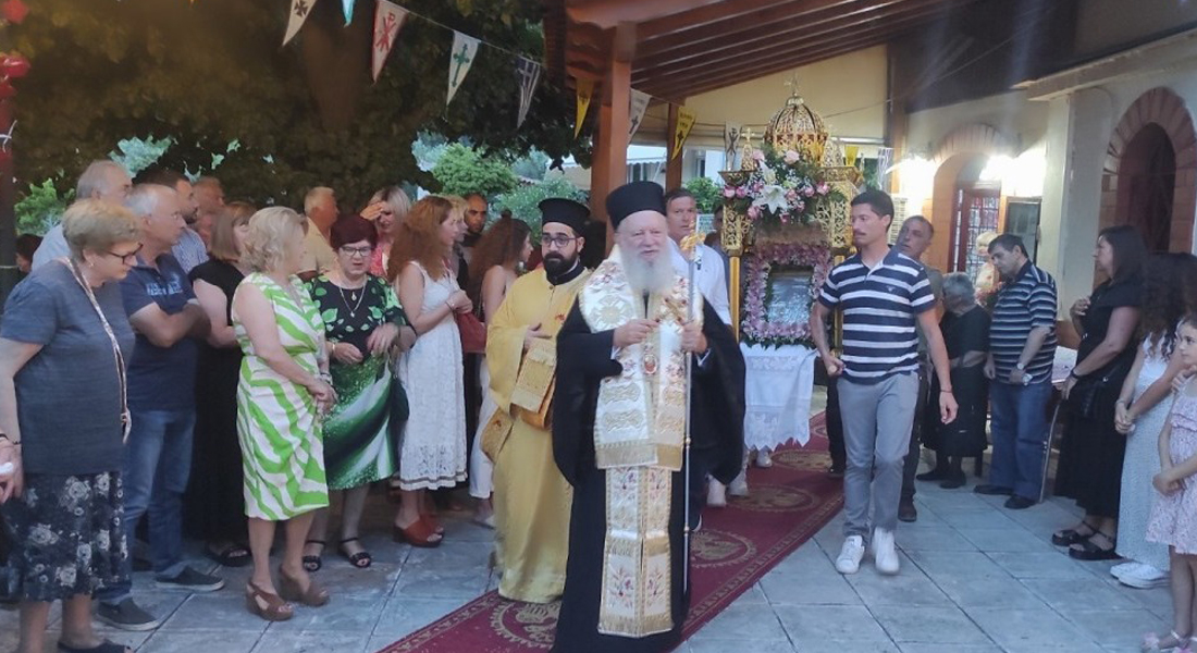 Την Παρασκευή 23 Ιουνίου, ο Σεβασμιώτατος χοροστάτησε στον πανηγυρικό Εσπερινό της εορταζούσης Ενορίας Γενεθλίου του Προδρόμου Ηλίων. Το ιερό Αναλόγιο διακόνησαν ο Καθηγητής Βυζαντινής Μουσικής Δημήτριος Παπαβασιλείου και μαθητές του.