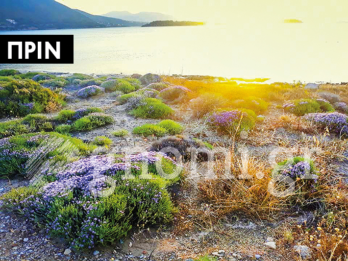 Ξαφνικά, το πρωί της Τετάρτης 14 του μήνα, οι λουόμενοι βρήκαν την παραλία κατεστραμμένη. Άγνωστοι είχαν κόψει με φρέζα όλη τη χαμηλή βλάστηση και μετέτρεψαν την παραλία σε ...γήπεδο προκαλώντας την οργή των λουόμενων.