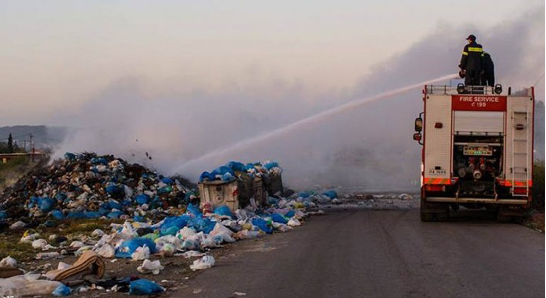 Άρπαξε φωτιά η χωματερή μέσα στο εργοτάξιο του Δήμου Χαλκιδέων στο Βασιλικό