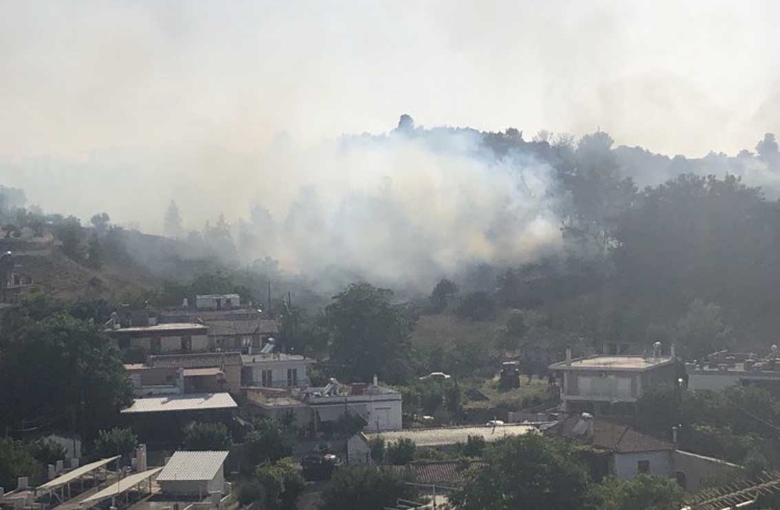 Φωτιά στο άλσος της Αγίας Τριάδας, μέσα στην πόλη της Θήβας, ξέσπασε στις 6 το απόγευμα της Δευτέρας 24 Ιουλίου.