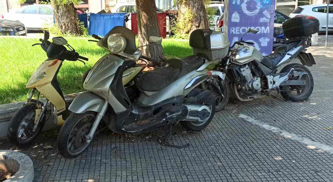 Λες και δεν υπάρχει αρμόδιος αντιδήμαρχος, επόπτες καθαριότητας, υπάλληλοι, λες και είναι αόρατα αυτά τα δίκυκλα, που αποτελούν εστία μόλυνσης και προσβάλλουν την αισθητική, αλλά και τη νοημοσύνη μας, γιατί -αν μη τι άλλο- εκτός από παρατημένα είναι και παράνομα παρκαρισμένα.