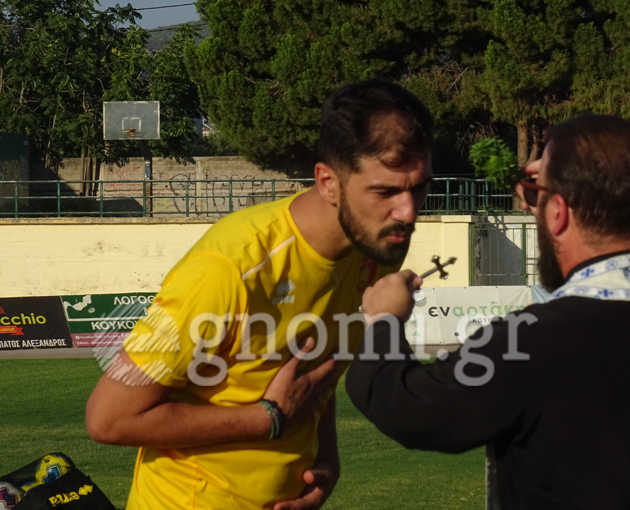 Προηγήθηκε αγιασμός (στη φωτό πάνω ο "βράχος" της ομάδας Κώστας Τσούπρος).