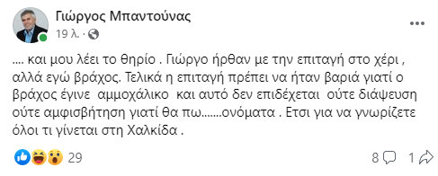 Συγκεκριμένα, ο κ. Μπαντούντας έγραψε: