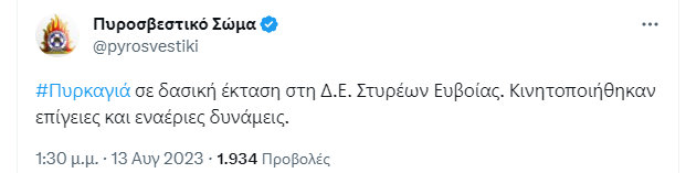 Νέος συναγερμός για φωτιά στην Εύβοια σήμανε το μεσημέρι της Κυριακής 13 Αυγούστου. Συγκεκριμένα, εκδηλώθηκε πυρκαγιά σε δασική έκταση της Δημοτικής Ενότητας Στυρέων, του Δήμου Καρύστου