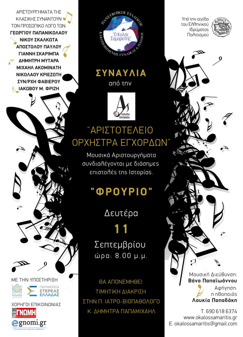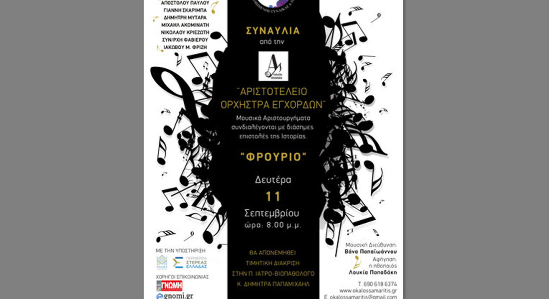 Πρόκειται για μία συναυλία από την Αριστοτέλειο Ορχήστρα Εγχόρδων, η οποία θα πραγματοποιηθεί την Δευτέρα 11 Σεπτεμβρίου, στις 8 το βράδυ, στο Φρούριο του Καράμπαμπα.