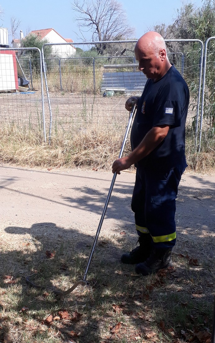 Με ειδικό εξάρτημα το έβγαλαν από το σπίτι και το οδήγησαν στα παρακείμενα χωράφια, στο φυσικό του περιβάλλον. Έτσι η επιχείρηση στέφθηκε από επιτυχία και επανήλθε η ηρεμία στο σπίτι του κ. Παπανταζή, αφού δεν είναι μικρό πράγμα να βρίσκεις ένα φίδι μέσα στο σπίτι σου.