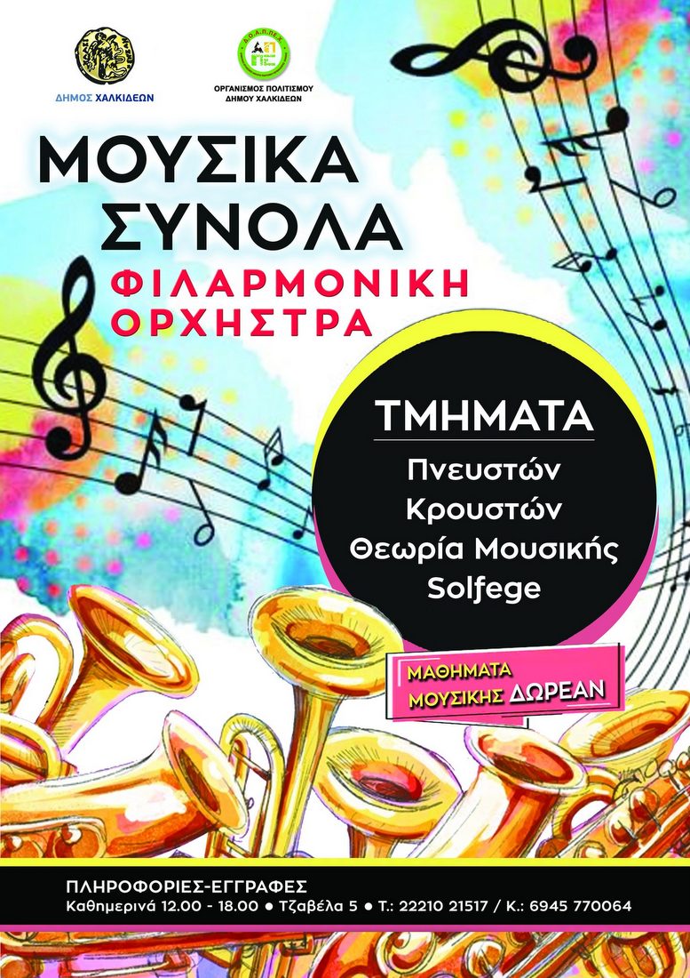 Την Δευτέρα 4 Σεπτεμβρίου ξεκινούν οι εγγραφές νέων μαθητών στη Φιλαρμονική Ορχήστρα του Δήμου Χαλκιδέων, για την καλλιτεχνική περίοδο 2023 – 2024.