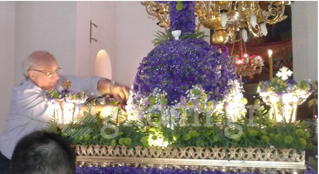 * Στη φωτογραφία, ο Αντώνης Σκιάς στολίζει τον επιτάφιο της Αγίας Βαρβάρας το 2017. Το σπίτι της οικογένειάς του βρίσκεται σε πολυκατοικία της ομώνυμης πλατείας της Χαλκίδας, ακριβώς απέναντι από τον ιερό ναό της Αγίας Βαρβάρας.