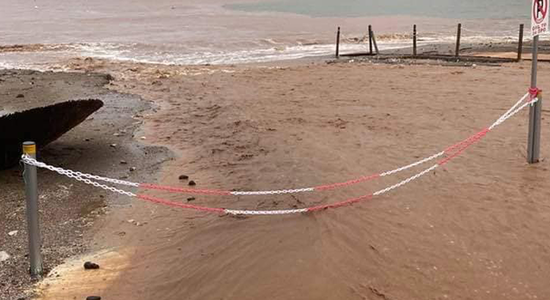 Πλημμυρικά φαινόμενα υπάρχουν στην παραλία Κοτσικιάς (φωτό επάνω) αλλά και τις Ροβιές, ενώ στον κεντρικό δρόμο προς Προκόπι, στη θέση Δερβένι, η διέλευση γίνεται με μεγάλη προσοχή λόγω κατολισθήσεων.
