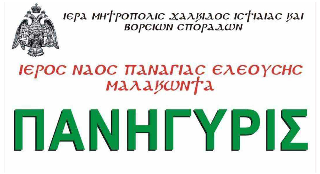 Ο ιερός ναός Παναγίας Ελεούσας, στο Μαλακώντα Ερέτριας, πανηγυρίζει για την γιορτή του γενέθλιου της Θεοτόκου. Σε λίγη ώρα, στις 7 το απόγευμα, σήμερα Πέμπτης 7 Σεπτεμβρίου, αρχίζει ο πανηγυρικός Εσπερινός, με αρτοκλασία και θείο κήρυγμα.
